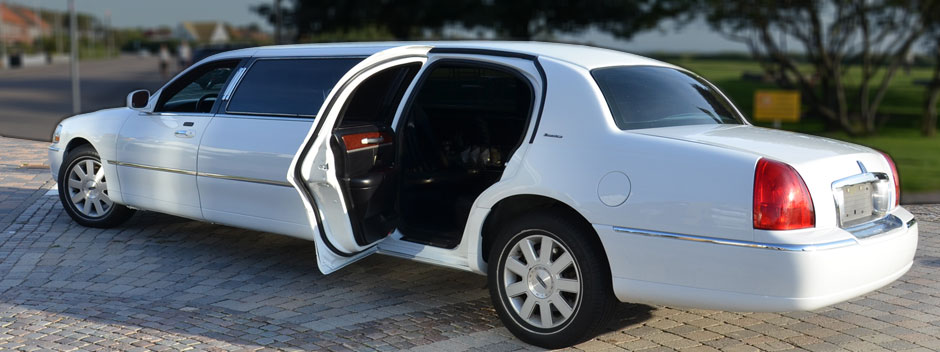 Vi har följande limousiner bilden ovan vit Lincoln limousine för 6-7 passagerare utmärkt till affärsmöten böllop jubileum kalas