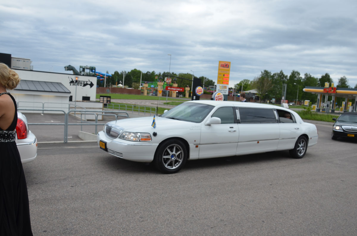 Vi har även Sveriges längsta vit Lincoln town car limousine 11.5m det finns plats för 14 personer men enligt Svensklag gäller 8st + chaufför denna limousine är nästan lika lång som en stadsbuss så vi kan inte köra i trånga villa områden mm Limousinen är utrustad med 3 barer ljuseffekter lazrar musikanläggning mm champagnekylare is glas mm finns i våra limousiner Pris 3500:- först timmen därefter 2000:-/timme